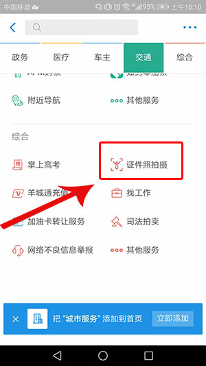 在更更多服務(wù)里的“綜合”找到“證件照拍攝”