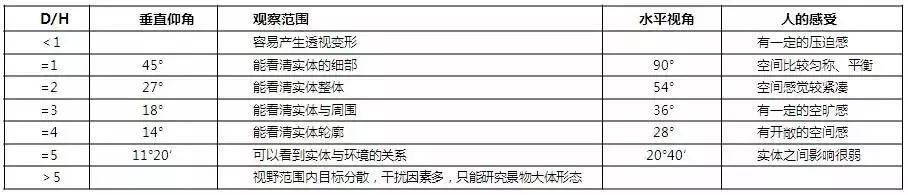 景區(qū)拍照抓拍系統(tǒng)怎么放置?首先考慮景點與游客視線的關(guān)系,這種關(guān)系取決于視線距離和物體高度之比(D/H),一般來說D/H大體在1:3之間,游客視線設(shè)計取垂直視角18°,水平視角36°。作為普通觀光時,這個角度是視覺開始渙散的界線,這種距離會使游客去注意到與周邊物體的關(guān)系。當(dāng)視角為45°時,注意力會相對集中,這時候游客容易觀察到周邊景物的細(xì)部。當(dāng)視角為30°時候,游客容易看到景物立面的細(xì)部。當(dāng)視角為14°時,游客傾向于將景物看成突出于整體背景中的輪廓線(圖2,表1)。