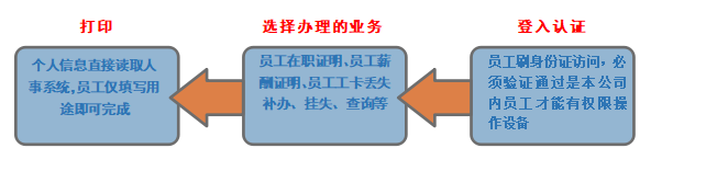 在職人員(根據(jù)員工人員類別劃分權(quán)限級別,部分人可以打印證明,補辦工卡,部分人只能補辦公開,部分人不能打印證明,不能補辦工卡,避免無關(guān)人員使用設(shè)備,輸出涉密信息。)